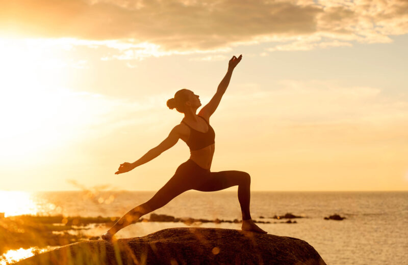 A logical asana practice for sunrise and sunset is the Sun Salutation (Surya Namaskar). We salute the sun, bowing to its power and syncing our breath to produce this moving meditation or prayer. During sunrise, this practice can help to invigorate the body while waking our consciousness and surrendering to the forces at play much greater than us. Knowing what we know about the balancing energies of sunrise and sunset, we can gather that your asana practice also receives the benefit of this transition period by experiencing balance within the physical and astral bodies, which can lead to profound experiences of bliss, meditation and relaxation in asana practice.