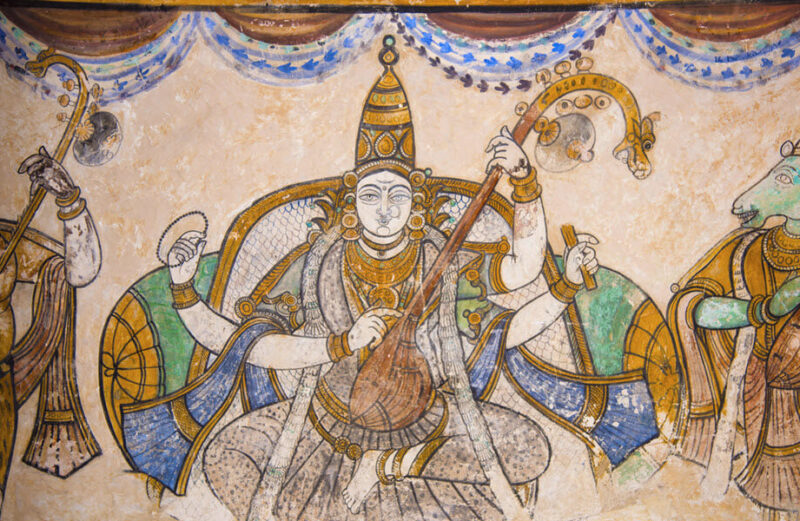 Saraswati is said to have vak or vach siddhi – the gift of speech. She speaks sweetly and eloquently. She knows when to utter words and when to listen to the inner sound.